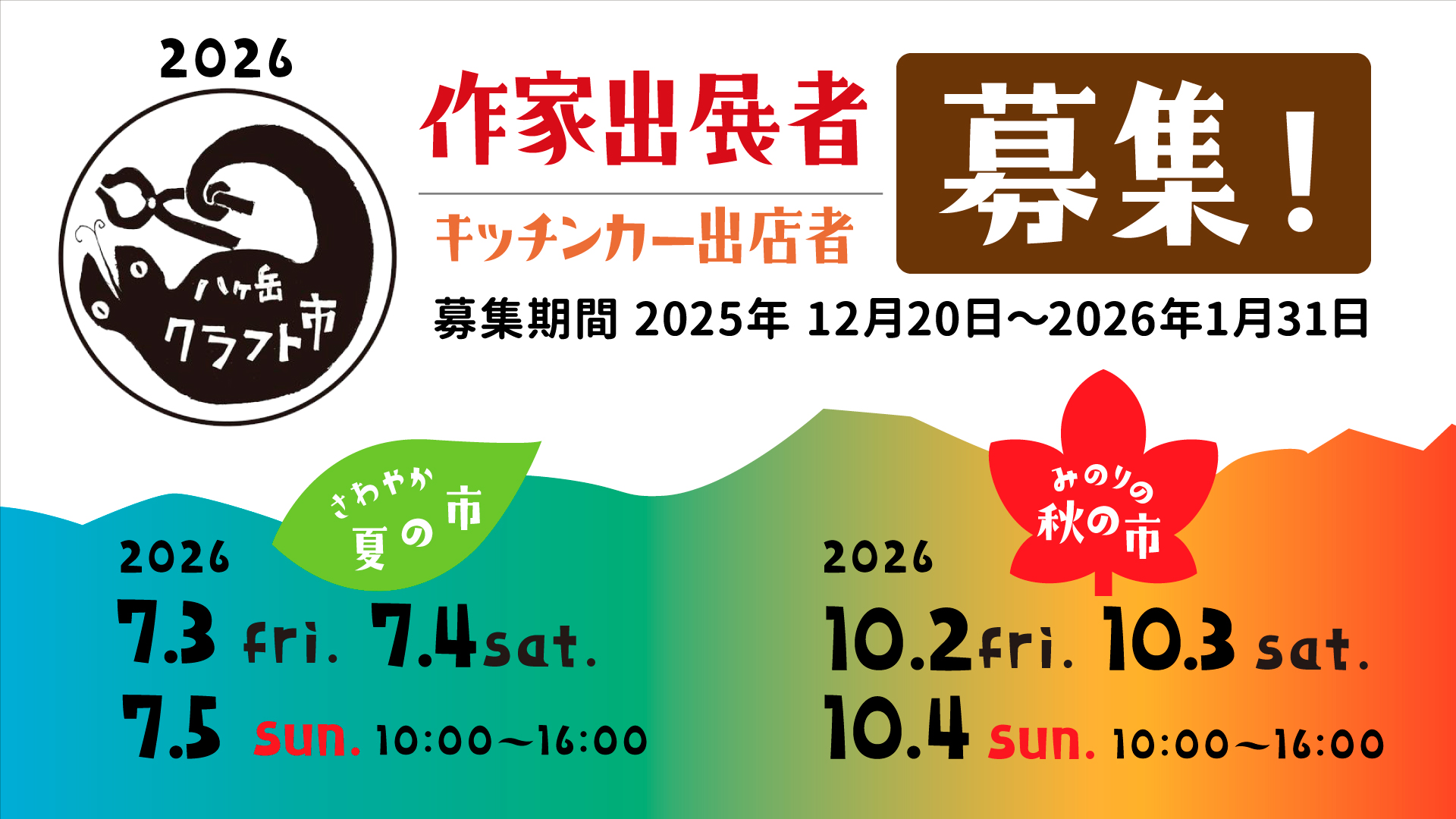 八ヶ岳クラフト市2026 夏の市・秋の市出展作家様募集のお知らせ